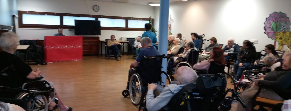 Pierre, l’ancien animateur de la Maison des Poètes a gardé un lien très fort avec les résidents. Il revenait faire des petites visites de courtoisie dès qu’il en avait le temps.
